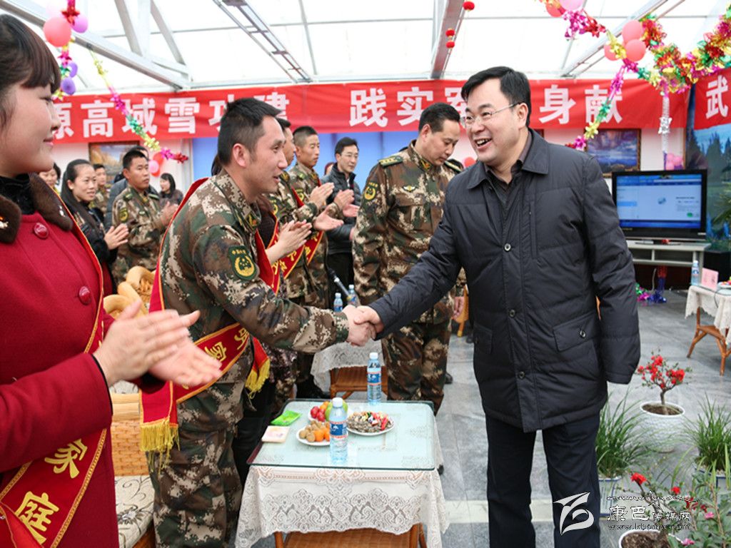 本網訊(記者 張濤 文/圖) 大年初二(2月20日)下午,州委書記胡昌升專程來到武警二支隊與各位軍人家屬歡聚一堂,共度新春佳節(jié)。代表州委、州政府和百萬甘孜兒女,對來康定過年的35名軍嫂表示熱烈歡迎,對各位軍嫂為甘孜發(fā)展穩(wěn)定和民生所做出的無私奉獻表示衷心感謝,向全州廣大軍屬致以崇高敬意!