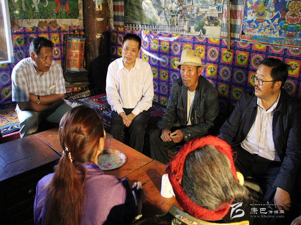 劉成鳴在新龍縣甲拉西鄉(xiāng)貧困戶大阿布澤仁家了解生產(chǎn)生活情況。