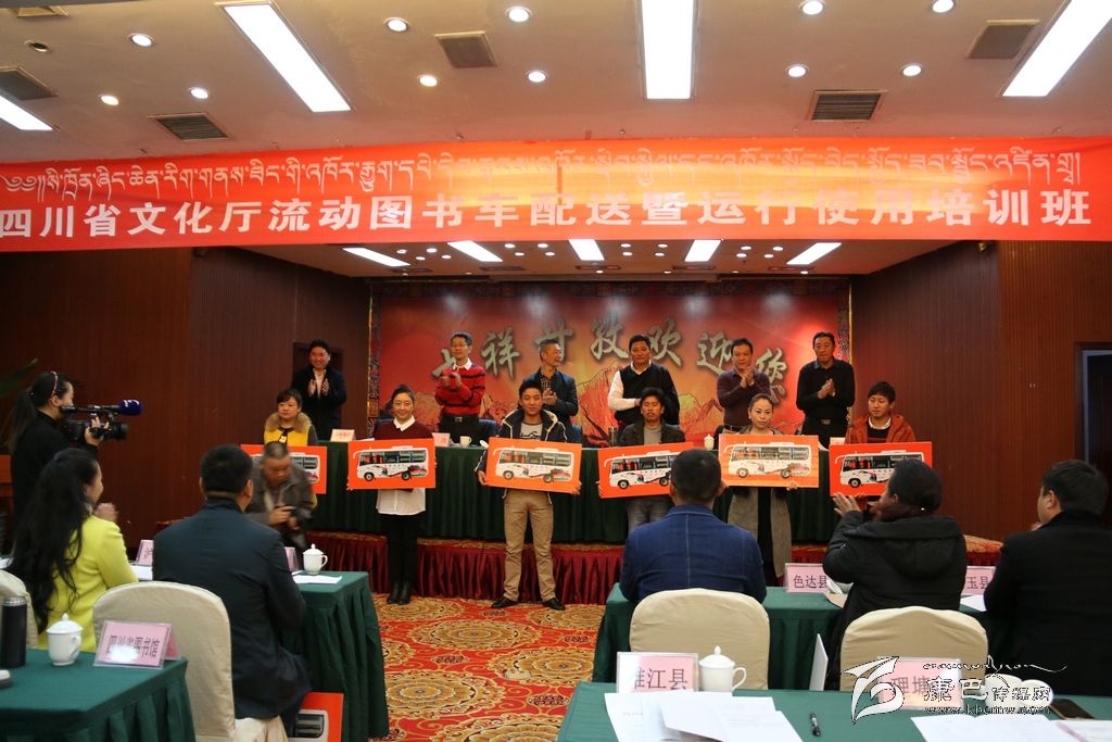 本網(wǎng)訊(記者 宋志勇文/圖)10月13日,四川省文化廳流動(dòng)圖書(shū)車配送暨運(yùn)行使用培訓(xùn)會(huì)在康定市舉行,共為我州配送流動(dòng)圖書(shū)服務(wù)車18輛。省文化廳副廳長(zhǎng)向華全,州委常委、宣傳部長(zhǎng)相洛,省文化廳財(cái)務(wù)處處長(zhǎng)潘沛等出席并為18個(gè)縣(市)發(fā)放了車鑰匙。
