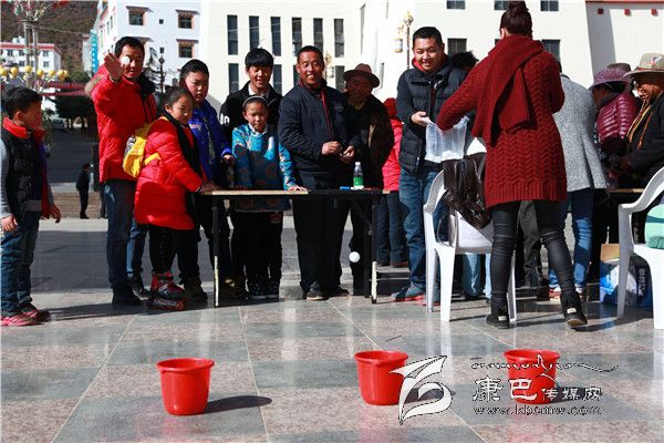 據(jù)了解,從大年初三開(kāi)始,在香巴拉廣場(chǎng)上,除了鍋莊表演外,最吸引人的就是新春游園活動(dòng)。大年初五早上,在歡快的音樂(lè)聲中,群眾成群結(jié)隊(duì)的趕往香巴拉休閑廣場(chǎng)參加新春游園活動(dòng)。這次的游園活動(dòng)除了夾珠子、投飛鏢等項(xiàng)目外,還有筷子入瓶、彈球入杯等內(nèi)容。活動(dòng)現(xiàn)場(chǎng),擁色帶著侄女甜甜早早就開(kāi)始排隊(duì),她們已經(jīng)玩了好幾個(gè)游戲,掙了好幾張兌獎(jiǎng)卷。她告訴筆者,游園活動(dòng)的獎(jiǎng)品雖然不多,但新年能拿到禮物,心里還是樂(lè)滋滋的,更為重要的是能和大家一起熱熱鬧鬧過(guò)個(gè)年。