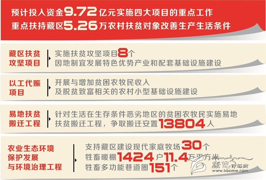 答:比如藏區(qū)扶貧攻堅(jiān)項(xiàng)目,從實(shí)施內(nèi)容來(lái)看,今年在阿壩州、甘孜州、涼山州木里縣實(shí)施扶貧攻堅(jiān)項(xiàng)目8個(gè),其中阿壩州3個(gè)、甘孜州4個(gè)、涼山州木里縣1個(gè),預(yù)計(jì)投入中央財(cái)政專項(xiàng)扶貧資金4000萬(wàn)元,表面上延續(xù)了去年的工作,但今年實(shí)施項(xiàng)目將突出兩大要求,一是項(xiàng)目要瞄準(zhǔn)今年有計(jì)劃摘帽的貧困村、計(jì)劃脫貧的貧困戶,集中力量解決突出問題。二是項(xiàng)目資金要到村入戶,因地制宜發(fā)展特色優(yōu)勢(shì)產(chǎn)業(yè)和配套基礎(chǔ)設(shè)施建設(shè),確保精準(zhǔn)扶貧。