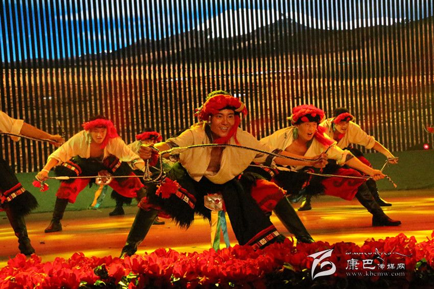 20點整,演出在民樂演奏《康定情歌》中拉開序幕。30名身著各色民族服飾的演員用管、弦、鼓、號、鈴等各類傳統(tǒng)樂器向大家重述了優(yōu)美動人的康定情事。稍后的《鈸舞》、《踏鈴》和《康巴漢子》讓現(xiàn)場熱度直線飆升。取材于格薩爾說唱故事的《格薩爾禮贊》更讓現(xiàn)場觀眾震撼無比。最終,演出在歌曲《美麗的康巴我的家》中落下帷幕。在近80分鐘的表演中,演員們用歡騰的歌聲、飛揚的舞步、火熱的激情,激蕩著在場觀眾的心緒,使現(xiàn)場響起一陣陣熱烈的掌聲。