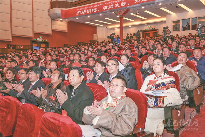 州人民政府代理州長肖友才健步走上報(bào)告臺,面向會場深深地鞠躬,全場掌聲如潮般響起,這掌聲蘊(yùn)含著人民代表對甘孜發(fā)展的殷切期盼。
