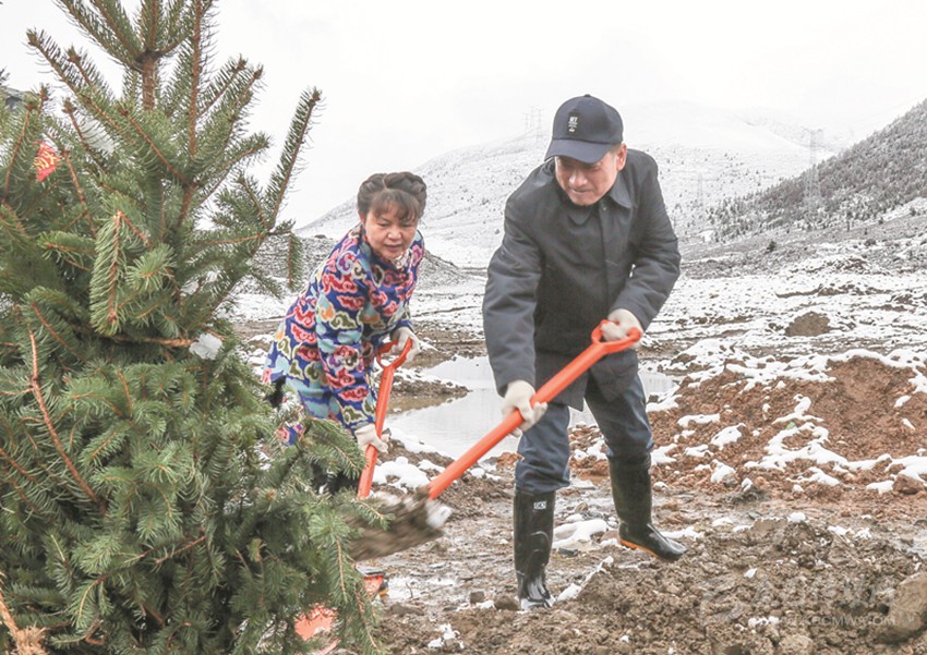 在海拔3800米的呷巴鄉(xiāng)植樹點,劉成鳴、向秋、包建華與其他州領(lǐng)導(dǎo)一道拿起鐵鍬與機(jī)關(guān)干部、部隊官兵和學(xué)生們一起植樹。挖坑、扶苗、填土、澆水……大家合力栽下楊柳、高山柳等一棵棵適合當(dāng)?shù)厣L的樹苗。植樹過程中,劉成鳴還不時詢問本次義務(wù)植樹活動的栽種面積、樹木品種及成活率等情況。在與同學(xué)們一起植樹時,劉成鳴勉勵同學(xué)們從小樹立保護(hù)環(huán)境、愛綠護(hù)綠意識,多做有意義的事,用勤勞的雙手建設(shè)美好家園,要像今天種下的一棵棵樹苗一樣,健康茁壯成長。