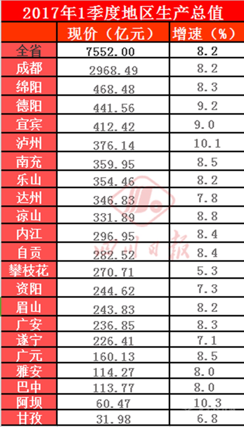 兩項(xiàng)前五中,德陽(yáng)和瀘州雙雙榜上有名。