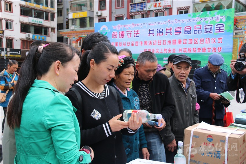 啟動(dòng)儀式后,在康定情歌廣場(chǎng)上,來自州食安委和康定市食安相關(guān)成員單位通過現(xiàn)場(chǎng)咨詢、板塊展示、張貼海報(bào)標(biāo)語、發(fā)放資料等方式,為前來關(guān)注食品安全的市民們發(fā)放和講解相關(guān)問題。在現(xiàn)場(chǎng),記者看到廣大市民關(guān)注最多的是假冒偽劣食品,對(duì)于如何識(shí)別,現(xiàn)場(chǎng)工作人員都一一進(jìn)行了耐心細(xì)致地講解。