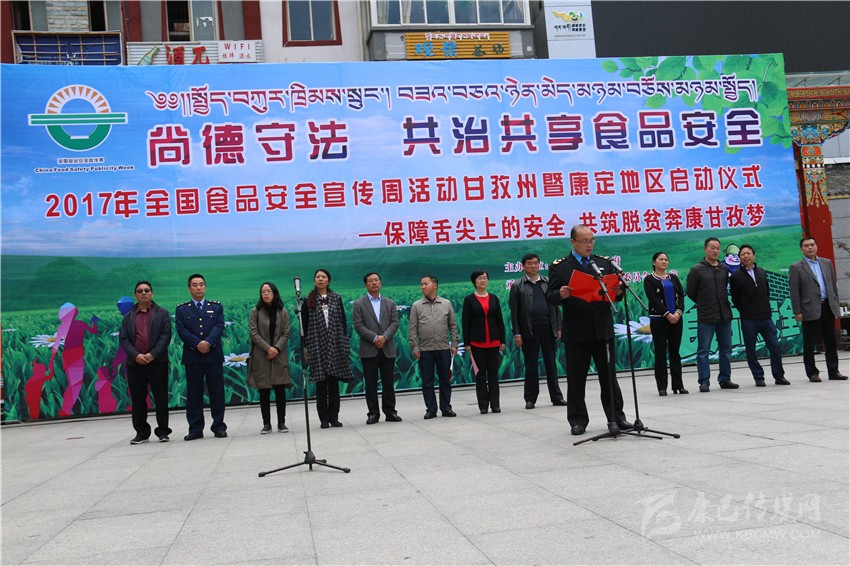 本網(wǎng)訊(記者 宋志勇 文/圖)6月29日,由州人民政府主辦的“2017年全國食品安全宣傳周活動(dòng)”暨康定地區(qū)啟動(dòng)儀式在康定舉行,目的是進(jìn)一步普及安全法律法規(guī)和基本知識(shí),提高公眾的食品安全意識(shí)和自我保護(hù)能力,進(jìn)一步強(qiáng)化食品生產(chǎn)經(jīng)營(yíng)者的法律意識(shí)、責(zé)任意識(shí)、誠信意識(shí),進(jìn)一步強(qiáng)化食品安全“政府負(fù)總責(zé)、監(jiān)管部門各司其責(zé)、食品生產(chǎn)經(jīng)營(yíng)者是第一責(zé)任人”的責(zé)任,為構(gòu)建食品安全長(zhǎng)效機(jī)制營(yíng)造良好的氛圍。