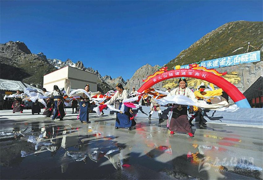藏族群眾載歌載舞慶祝雀兒山隧道通車(chē)。何海洋 攝