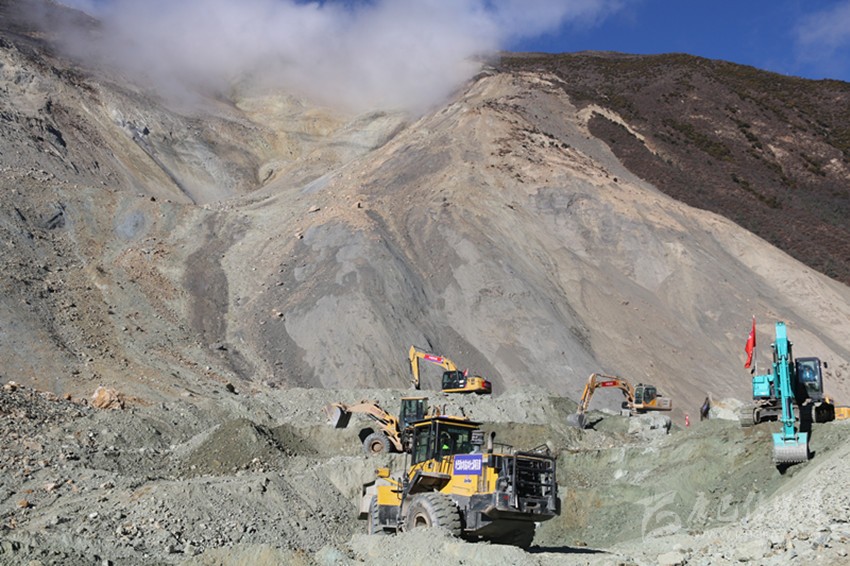 11月7日,又有7臺挖掘機抵達則巴村。當(dāng)天中午,道路開辟工作開始全面推進。人輪班機器不休息,經(jīng)過半天一夜的不間斷施工,終于在8日8時過將通往江邊的7.5公里通道打通。挖掘機繼續(xù)沿著相對平坦的河床向上,開辟通往堰塞體壩頂?shù)牡缆贰?日下午2時28分,來自水電五局的挖機手趙明喜將第一臺挖掘機成功開上壩頂,比預(yù)計時間提前18個小時。“這個時間點我記得很清楚,這提前的18個小時給后續(xù)搶險救援騰出了寶貴的時間。”省應(yīng)急管理廳副廳長毛德忠說。