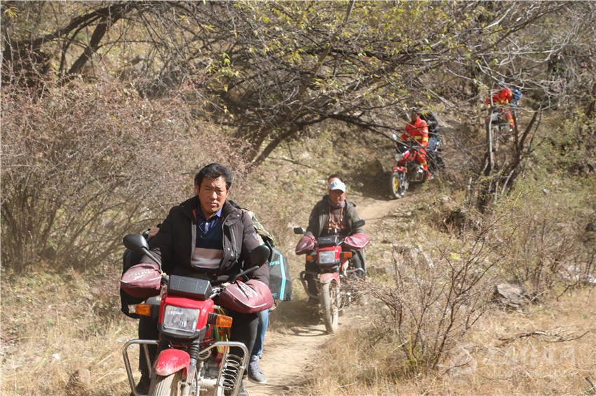 怎么辦?只有靠人抬。包括巴登多吉在內(nèi)的8名村民一起上陣,4人一組,用木棍和繩子做了一頂轎子,輪流抬著雷達徒步前行。他們7日中午出發(fā),直到第二天下午才將雷達送到目的地。
