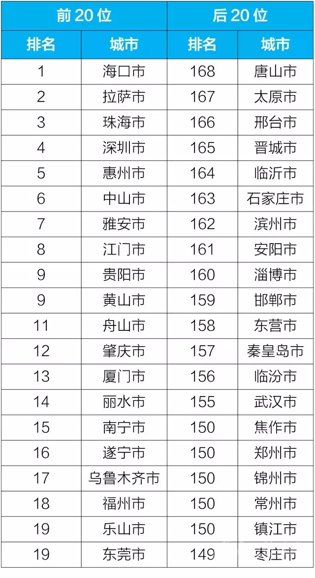 按照國務(wù)院《打贏藍(lán)天保衛(wèi)戰(zhàn)三年行動(dòng)計(jì)劃》有關(guān)要求,生態(tài)環(huán)境部在原有74個(gè)重點(diǎn)城市空氣質(zhì)量排名基礎(chǔ)上,將排名城市范圍擴(kuò)大至168個(gè)地級及以上城市,包括京津冀及周邊地區(qū)、長三角地區(qū)、汾渭平原、成渝地區(qū)、長江中游、珠三角等重點(diǎn)區(qū)域以及省會(huì)城市和計(jì)劃單列市。從2018年7月起,生態(tài)環(huán)境部每月發(fā)布空氣質(zhì)量相對較好的前20個(gè)城市和空氣質(zhì)量相對較差的后20個(gè)城市名單,每半年發(fā)布空氣質(zhì)量改善幅度相對較好和相對較差的20個(gè)城市名單。