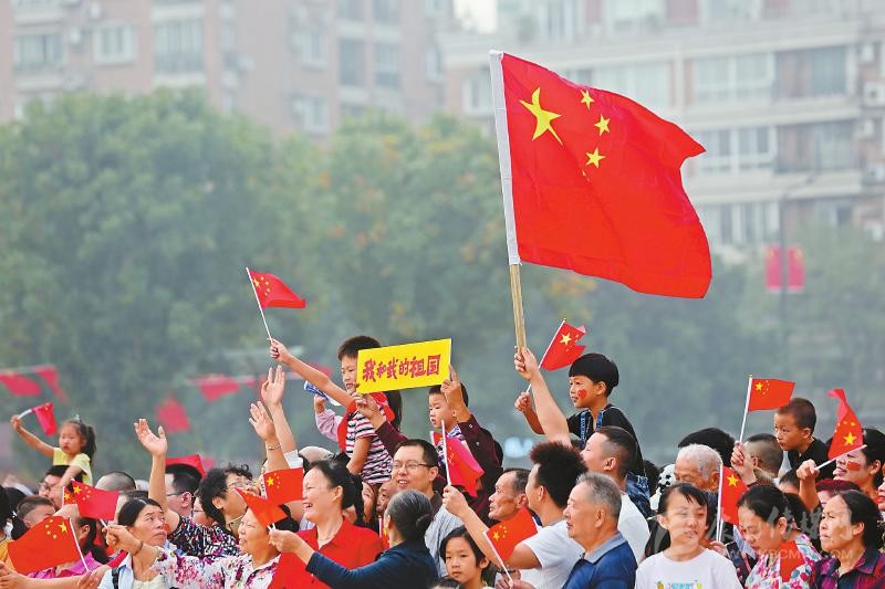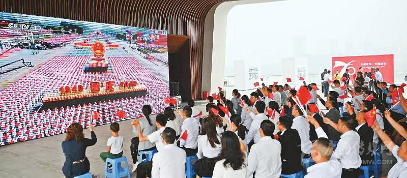上午10時(shí),慶祝中華人民共和國(guó)成立70周年大會(huì)開(kāi)始。通過(guò)電視信號(hào),大會(huì)盛況傳遞至每個(gè)現(xiàn)場(chǎng)?!芭c祖國(guó)母親同在,祝福祖國(guó)繁榮昌盛?!边@是大家共同的心聲。□本報(bào)記者 林凌 何勤華 程文雯 徐中成 陳碧紅 文莎