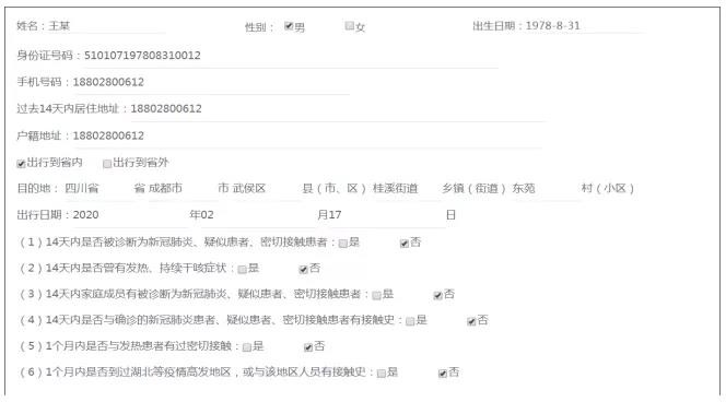 (二)服務內容。居住地醫(yī)療衛(wèi)生機構對申報人在開展流行病學史調查、測量體溫的基礎上,為符合條件的申報人出具《四川外出人員健康申報證明》。