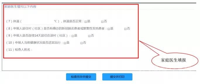 2.家庭醫(yī)生填報:家庭醫(yī)生可選擇電腦端或通過手機微信、支付寶“掃一掃”,掃描家庭醫(yī)生二維碼進入系統,輸入用戶名和密碼登錄,輸入被檢查人員身份證號碼調取申報人填報信息,填寫診斷相關內容并保存,打印申報證明簽字蓋章后,原件拍照上傳系統。