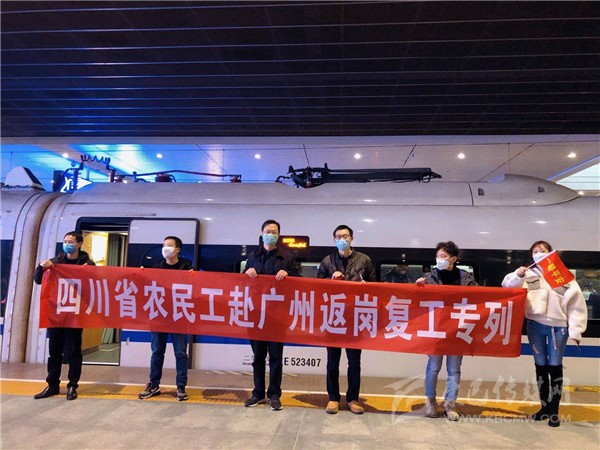 2月20日上午11:30,滿(mǎn)載著917名川籍農(nóng)民工的D4755次返崗專(zhuān)列,從成都東出發(fā)一路駛往廣州南。這是今年春節(jié)后我省首趟開(kāi)往廣東省的農(nóng)民工返崗專(zhuān)列,也是我省與廣東在新冠病毒疫情期間勞務(wù)協(xié)作共識(shí)達(dá)成后,開(kāi)行的首趟農(nóng)民工返崗專(zhuān)列。此次專(zhuān)列開(kāi)行,極大滿(mǎn)足了疫情期間我省農(nóng)民工外出務(wù)工需求,同時(shí)也為廣東省企業(yè)復(fù)工復(fù)產(chǎn)提供了勞動(dòng)力支持。此趟專(zhuān)列票務(wù)費(fèi)用由廣東省人社廳承擔(dān),農(nóng)民工免費(fèi)乘坐。