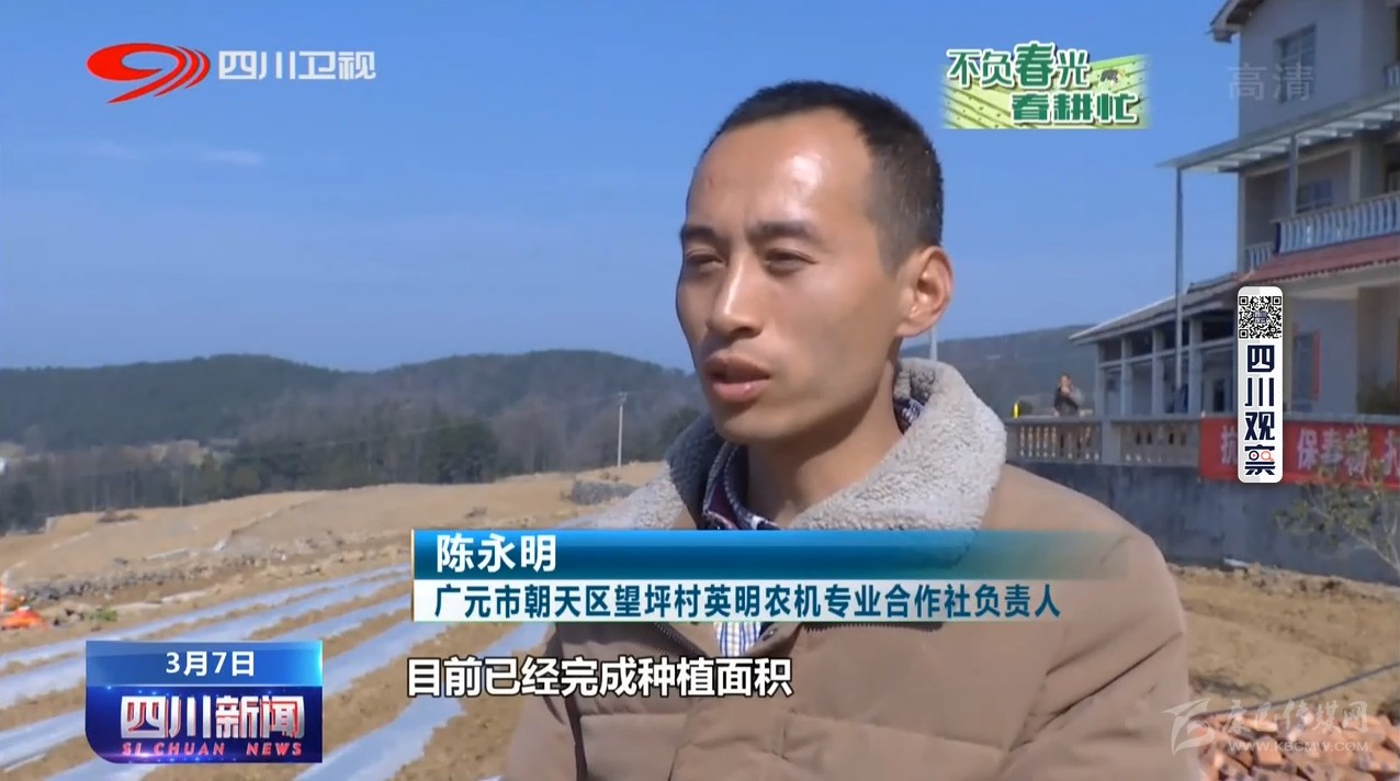 廣元市朝天區(qū)望坪村英明農(nóng)機專業(yè)合作社負(fù)責(zé)人陳永明:目前已經(jīng)完成種植面積有三四十畝,大量投入機器播種,300多畝地五六天就能完成。