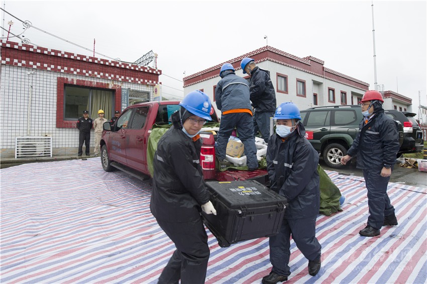 獲知“災(zāi)情”的第一時間, 國網(wǎng)四川省電力公司馬上發(fā)布集結(jié)準(zhǔn)備信息,聯(lián)系國網(wǎng)陜西省電力公司、重慶市電力公司進行應(yīng)急聯(lián)動支援。國網(wǎng)甘孜供電公司立即啟動應(yīng)急預(yù)案迅速響應(yīng),對災(zāi)害進行先期處置。來自陜西、重慶和四川應(yīng)急中心、信通公司、自貢公司、遂寧公司、眉山公司、電力醫(yī)院等6家基層單位的11支應(yīng)急隊伍全副武裝,攜帶工器具和應(yīng)急救援物資,在蒲江集結(jié)后,頂風(fēng)冒雨,遠距離奔襲7小時抵達“災(zāi)區(qū)”。