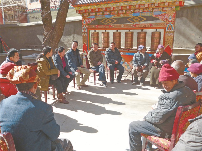 得益于易地扶貧搬遷這個脫貧攻堅頭號工程,巴德一家從草原搬進了色柯鎮(zhèn)安康社區(qū)這個甘孜州最大的搬遷安置點。這是高山腳下的美麗村寨,藍頂白墻的房屋連片綿延,院子里盛開著鮮花,寬闊的水泥路穿行其間。巴德家的房子90多平方米,還有獨立衛(wèi)生間和小院子。搬得出,還得穩(wěn)得住、能致富。巴德憑借彩繪石刻手藝,加上集體經(jīng)濟收入和公益崗位,年收入六七萬元,順利丟掉了“窮帽子”。和巴德一樣,色達縣17個偏遠貧困鄉(xiāng)鎮(zhèn)的363戶1544名農(nóng)牧民群眾住進了安康社區(qū)。色達縣將2個洗車場租賃費、3家商砼經(jīng)營權(quán)出讓費、1家餐飲企業(yè)經(jīng)營規(guī)費和牲畜屠宰場經(jīng)營權(quán)出讓費作為社區(qū)集體經(jīng)濟收入,引導社區(qū)居民在果根塘濕地保護、縣城公共衛(wèi)生管理等崗位就業(yè),實現(xiàn)戶均增收1萬余元,人均增收2553元,實現(xiàn)了住有所居、樂有所業(yè)。