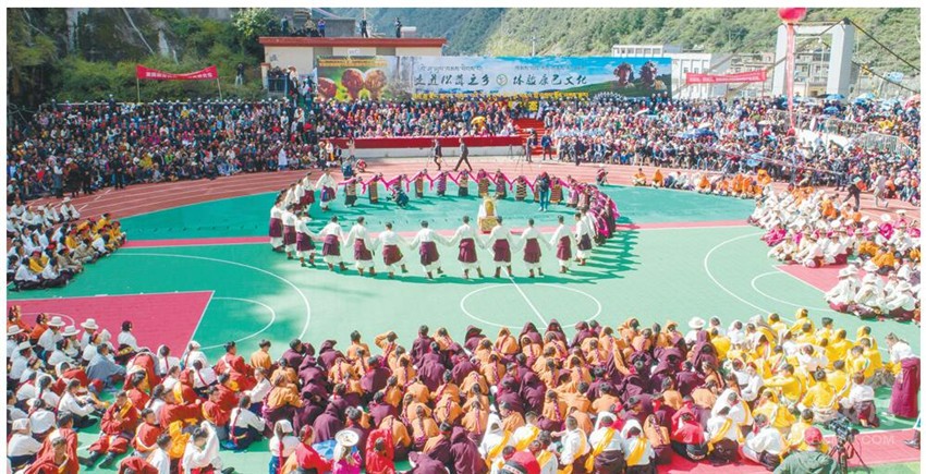 70年前,甘孜冤家械斗不止、匪特造謠騷擾、民族隔閡較深、血親仇殺嚴(yán)重、社會治安混亂。70年來,州委、州政府全面貫徹黨的民族宗教政策,堅定不移走中國特色解決民族問題的正確道路,在自治州成立時的第一屆各族各界人民代表大會上(1950年11月23日)就通過了《關(guān)于加強民族團結(jié)的決議》,并在1951年10月21日的第二次會議上通過了《各族各界人民團結(jié)愛國公約》。隨后,廣泛開展無產(chǎn)階級民族觀教育活動,進一步消除了民族隔閡。特別是黨的十八大以來,我們始終堅持把維護祖國統(tǒng)一、加強民族團結(jié)作為工作的著眼點和著力點,全力實施依法治州戰(zhàn)略,在全省率先啟動全國民族團結(jié)進步示范州創(chuàng)建、率先頒布實施《民族團結(jié)進步條例》,全面開展民族團結(jié)進步“八進”活動,持續(xù)推動各民族交往交流交融,深入推進“五二三”學(xué)教活動,積極引導(dǎo)藏傳佛教與社會主義社會相適應(yīng),“感黨恩、愛祖國、守法制、奔小康”成為最大共識,中華民族共同體意識更加牢固。各族人民像石榴籽一樣緊緊抱在一起,像糌粑團一樣緊緊黏在一起,像酥油茶一樣緊緊融在一起,形成了維護社會穩(wěn)定和民族團結(jié)的銅墻鐵壁。全州社會形勢實現(xiàn)了從亂象叢生到宗教和順、民族和睦、社會和諧、生活和美的歷史性跨越。