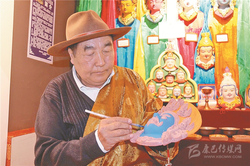 非遺傳承人正在演示藥泥面具制作。