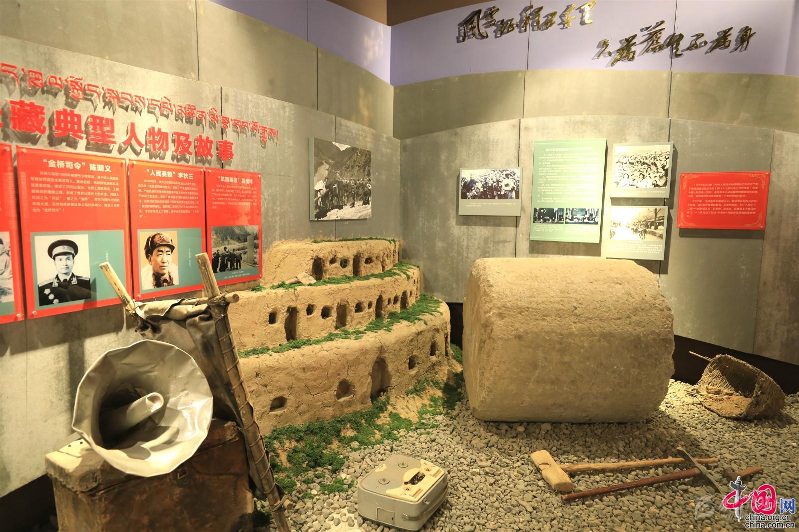 十八軍將士建設(shè)甘孜機(jī)場時(shí)用過的石碾、斧頭、錘子等原始工具。中國網(wǎng)記者胡俊 攝
