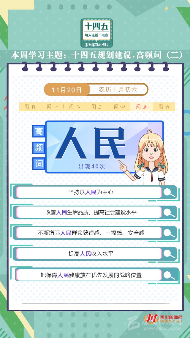 本周學(xué)習(xí)主題“十四五規(guī)劃建議·高頻詞”,10個高頻詞帶你學(xué)習(xí)“十四五”規(guī)劃建議。今天打卡學(xué)習(xí)“十四五”規(guī)劃建議中的高頻詞:人民。
