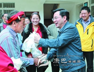 新龍縣友誼鄉(xiāng)平均海拔4600米,是全縣條件最艱苦的鄉(xiāng)。此時(shí)內(nèi)地早已是春暖花開(kāi)的美好時(shí)節(jié),友誼鄉(xiāng)卻還是冰天雪地的冬日景象。來(lái)到友誼鄉(xiāng),胡昌升克服嚴(yán)重缺氧,與鄉(xiāng)村干部一一握手,親切交談,他說(shuō),全鄉(xiāng)干部面對(duì)艱苦的自然環(huán)境,克服家庭和生活上的困難,依然恪盡職守、堅(jiān)守崗位,戰(zhàn)斗在服務(wù)群眾的一線上,我代表州委、州政府向全鄉(xiāng)干部表示最誠(chéng)摯的謝意和問(wèn)候。隨后,胡昌升與該鄉(xiāng)鄉(xiāng)村干部座談,傾聽(tīng)該鄉(xiāng)面臨的困難和問(wèn)題。胡昌升對(duì)隨行的新龍縣和州扶貧移民局、州衛(wèi)生局負(fù)責(zé)同志說(shuō),要以人為本、執(zhí)政為民,把政策、資金和基本公共服務(wù)更多地向邊遠(yuǎn)地區(qū)傾斜,讓每名農(nóng)牧民群眾切實(shí)感受到黨委、政府的關(guān)心關(guān)愛(ài)。胡昌升要求,越是邊遠(yuǎn)的地區(qū),越是要把黨支部的作用發(fā)揮出來(lái),把黨員的身份亮出來(lái),維護(hù)民族團(tuán)結(jié),維護(hù)社會(huì)穩(wěn)定,帶領(lǐng)農(nóng)牧民群眾增收致富過(guò)上幸福生活。