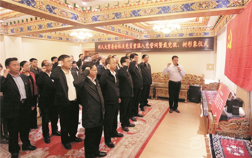 州人大常委會機(jī)關(guān)黨員重溫入黨誓詞。