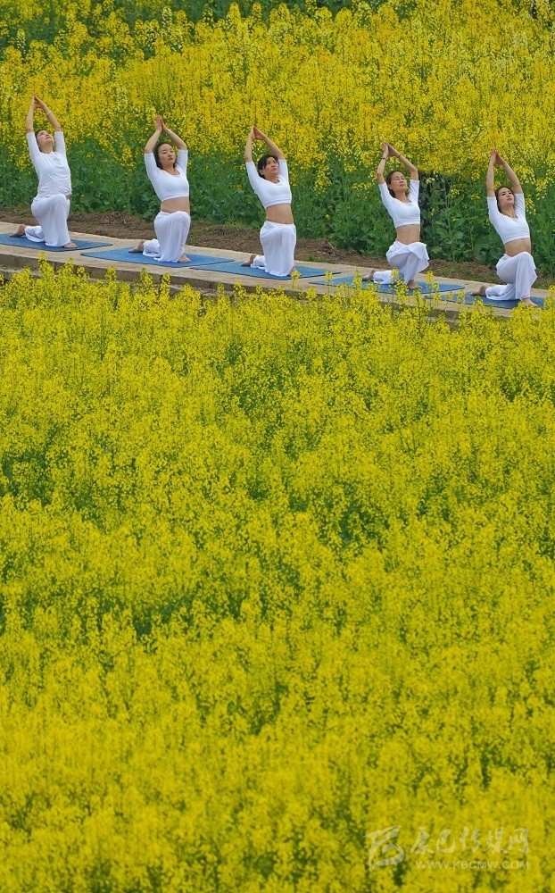 在南充市蓬安縣新園鄉(xiāng)踏坡梁村,來(lái)自省內(nèi)外的游客在數(shù)千畝油菜地里練瑜伽、騎賽車、秀旗袍、放風(fēng)箏。尹鋼 攝 (資料圖)