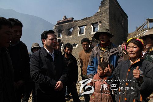 22日早晨8時(shí),胡昌升帶著對(duì)受災(zāi)群眾的惦念、對(duì)災(zāi)情的關(guān)注、對(duì)撲火人員的慰問(wèn),驅(qū)車前往康定縣沙德鄉(xiāng)火災(zāi)現(xiàn)場(chǎng)慰問(wèn)受災(zāi)群眾、查看火災(zāi)災(zāi)情,指揮撲火工作。此前的21日,上赤村洛讓鄧珠的房屋在此次森林火災(zāi)中被燒毀。一到上赤村,胡昌升便踩著帶著余溫的瓦礫來(lái)到受災(zāi)農(nóng)戶洛讓鄧珠家,為洛讓鄧珠送上慰問(wèn)金及毛毯、被子等物資,看望洛讓鄧珠的家人,詳細(xì)詢問(wèn)家庭基本情況和災(zāi)后安置情況。胡昌升說(shuō),大火無(wú)情人有情,房子沒(méi)了可以再建,東西燒毀了可以再買,人沒(méi)事就好,困難是暫時(shí)的,黨委、政府一定會(huì)照顧好你們的生活,和你們一起克服眼前困難,幫助你們盡快建設(shè)更加美麗、更加安全的新家園。他要求縣鄉(xiāng)黨委、政府要幫助洛讓鄧珠切實(shí)解決吃飯、穿衣、帳篷及房屋重建等實(shí)際困難,把黨委政府的溫暖送到他們心上。胡昌升還鼓勵(lì)洛讓鄧珠要振作起來(lái),在黨委政府的幫助下重建家園,不要因受災(zāi)耽誤孩子上學(xué)。希望鄉(xiāng)親們積極伸出援手,幫助洛讓鄧珠家解決生活困難、開展家園重建。