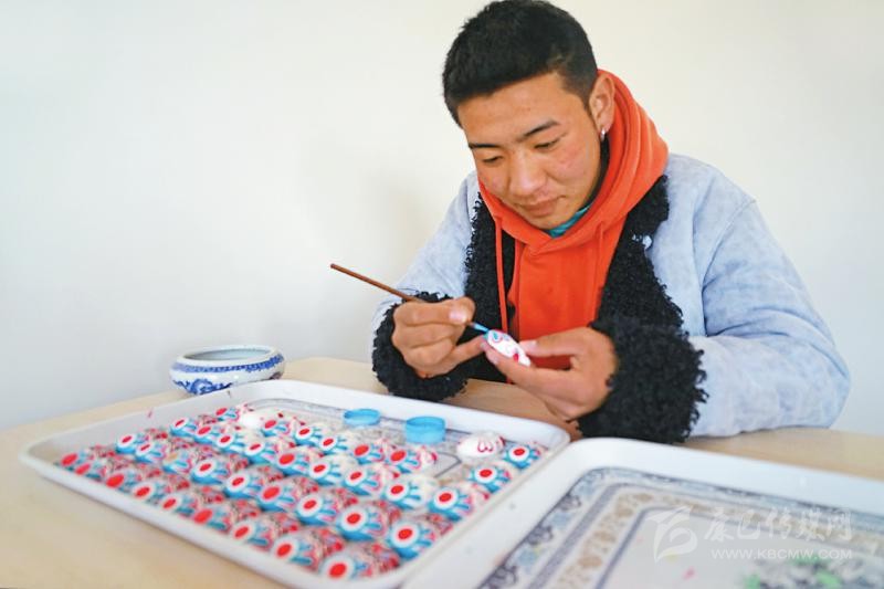 本著自主自愿的原則,教學(xué)班結(jié)束后,65名藏族青年主動(dòng)加入扶貧彩繪實(shí)訓(xùn)班,成為項(xiàng)目的第一批學(xué)員?!皩?shí)訓(xùn)期間不需要交任何費(fèi)用,還包吃住。我對(duì)畫京劇臉譜很有興趣,我們第一個(gè)月學(xué)習(xí)繪畫基本功,第二個(gè)月開始,根據(jù)成品質(zhì)量,就可以計(jì)件得酬勞,學(xué)習(xí)期間我每月能掙500多元。”邛批說。