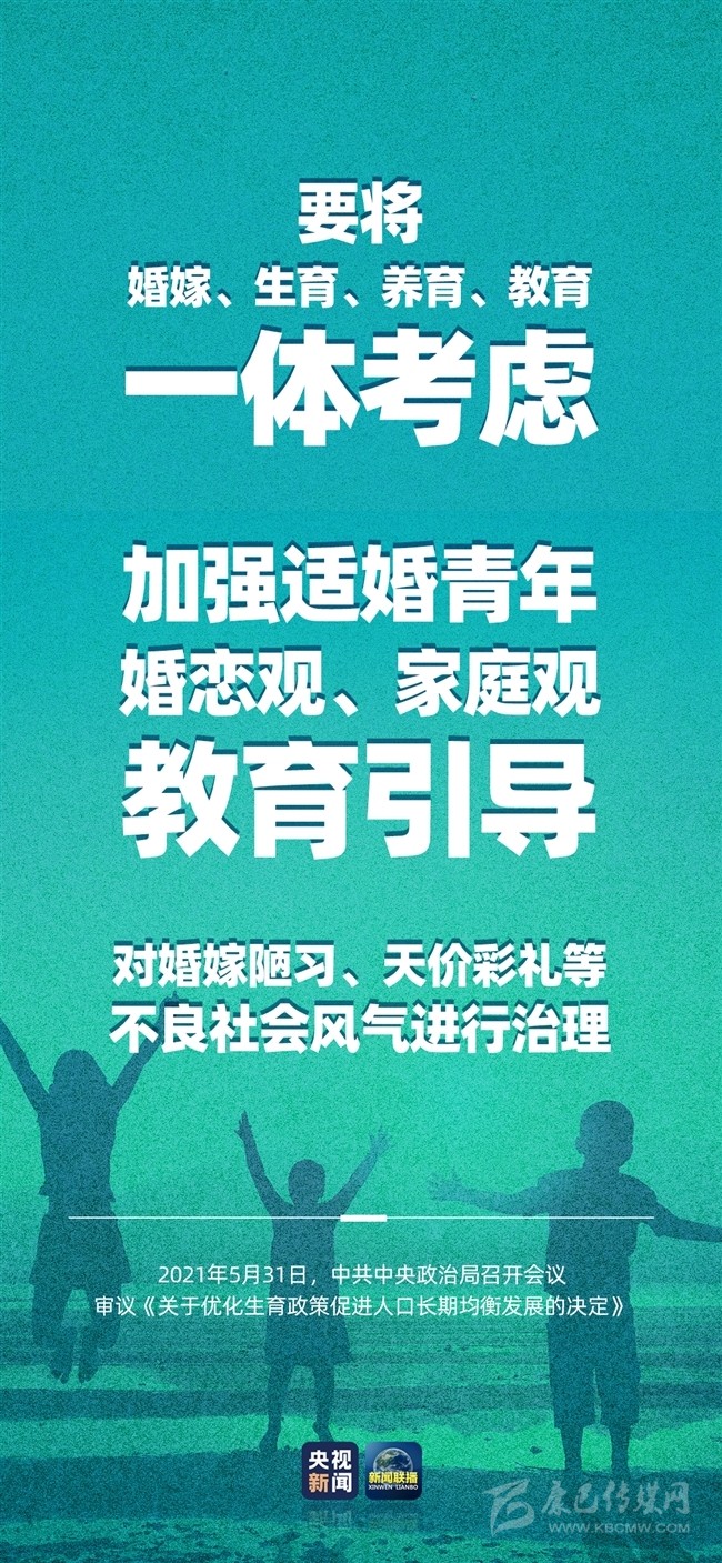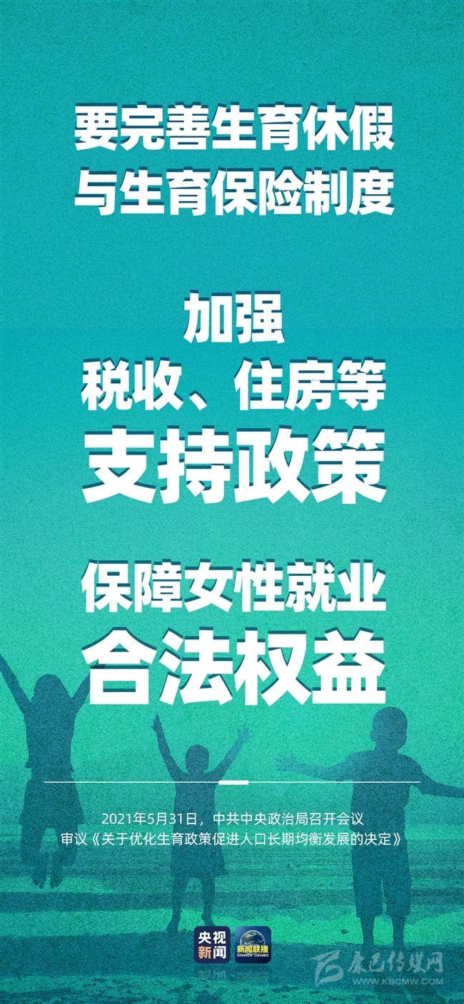 積極應(yīng)對(duì)人口老齡化,我國將出臺(tái)重大政策舉措。中共中央政治局5月31日召開會(huì)議,會(huì)議指出,進(jìn)一步優(yōu)化生育政策,實(shí)施一對(duì)夫妻可以生育三個(gè)子女政策及配套支持措施,有利于改善我國人口結(jié)構(gòu)、落實(shí)積極應(yīng)對(duì)人口老齡化國家戰(zhàn)略、保持我國人力資源稟賦優(yōu)勢。