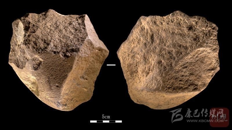 而不同石器有其獨(dú)特的功能,比如這件砍砸器,它看上去和普通石頭最像。但在考古人員眼里,這件石頭有鈍厚曲折的刃口,可起到劈砍、砸擊等作用,因而可以用于砍樹、做木棒、砸堅(jiān)果等工作。