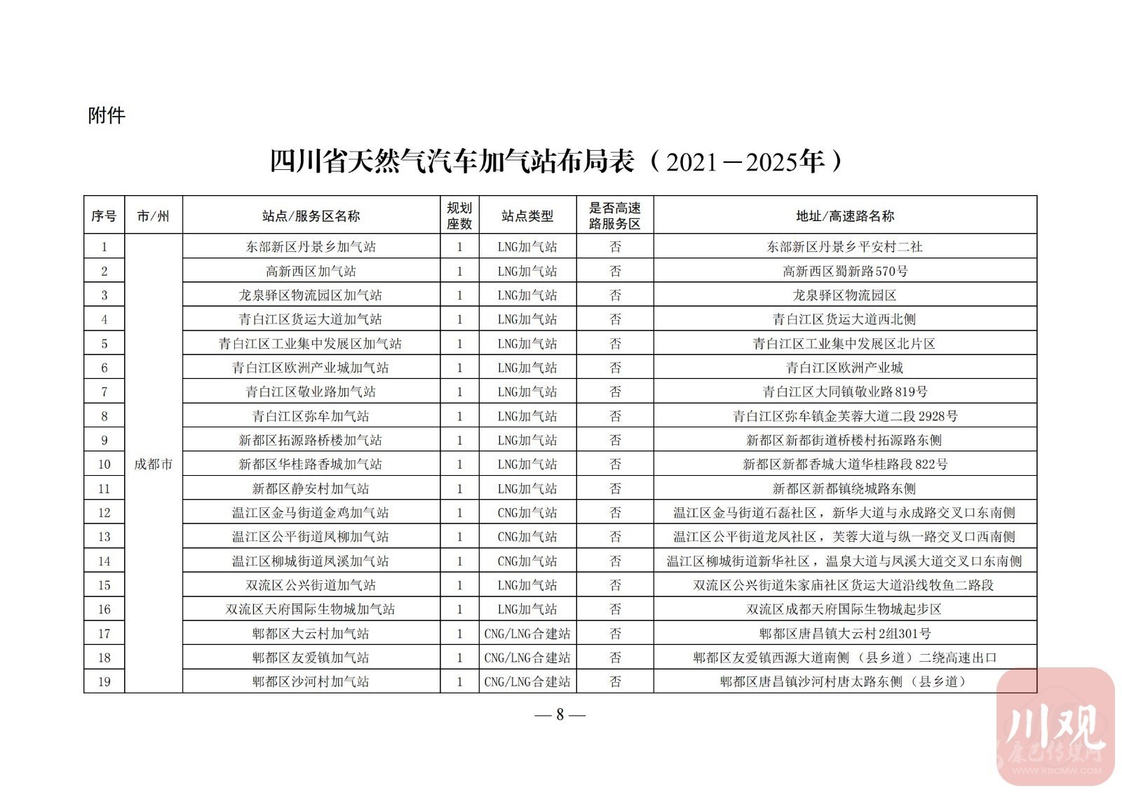 日前,四川省發(fā)展和改革委員會、四川省能源局印發(fā)《四川省天然氣汽車加氣站布局方案(2021-2025年)》(以下簡稱《方案》)?!斗桨浮诽岢龅?025年,四川將規(guī)劃新建加氣站500座(含高速公路服務(wù)區(qū)141座),其中,CNG加氣站15座、LNG加氣站401座、L-CNG加氣站8座、CNG/LNG合建站76座。