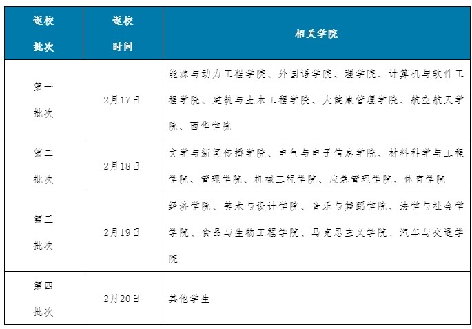 所有學(xué)生不得提前返校,均須遵照學(xué)校通知分批返校。具體安排如下: