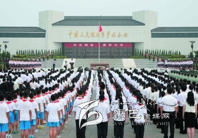 “牢記歷史、珍愛和平、勿忘國(guó)恥、圓夢(mèng)中華”……隨后,在領(lǐng)誓人帶領(lǐng)下,現(xiàn)場(chǎng)120名青年代表和120名少年兒童代表舉起右拳莊嚴(yán)宣誓。嘹亮的沖鋒號(hào)劃破天際,傳遞出中國(guó)人民捍衛(wèi)國(guó)家主權(quán)和領(lǐng)土完整、實(shí)現(xiàn)中華民族偉大復(fù)興的中國(guó)夢(mèng),推動(dòng)建設(shè)持久和平、共同繁榮和諧世界的堅(jiān)定意志。