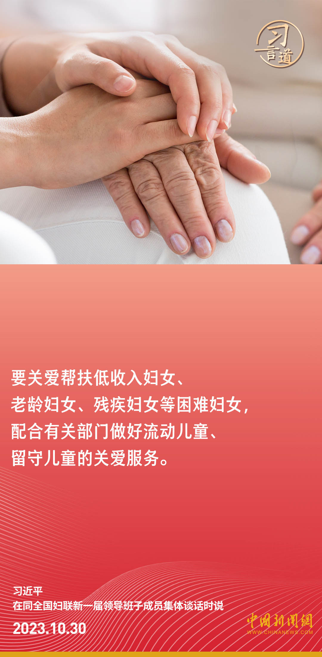 中共中央總書記、國(guó)家主席、中央軍委主席習(xí)近平30日下午在中南海同全國(guó)婦聯(lián)新一屆領(lǐng)導(dǎo)班子成員集體談話并發(fā)表重要講話。習(xí)近平強(qiáng)調(diào)——