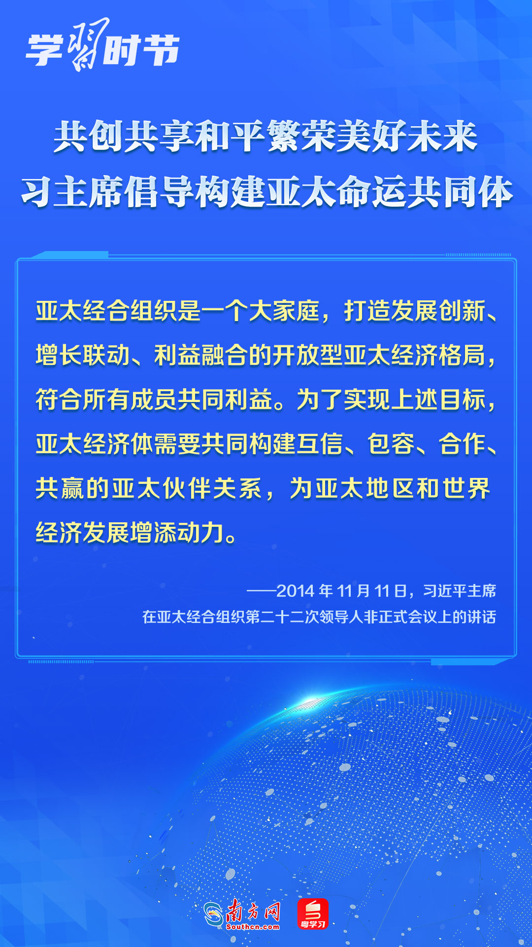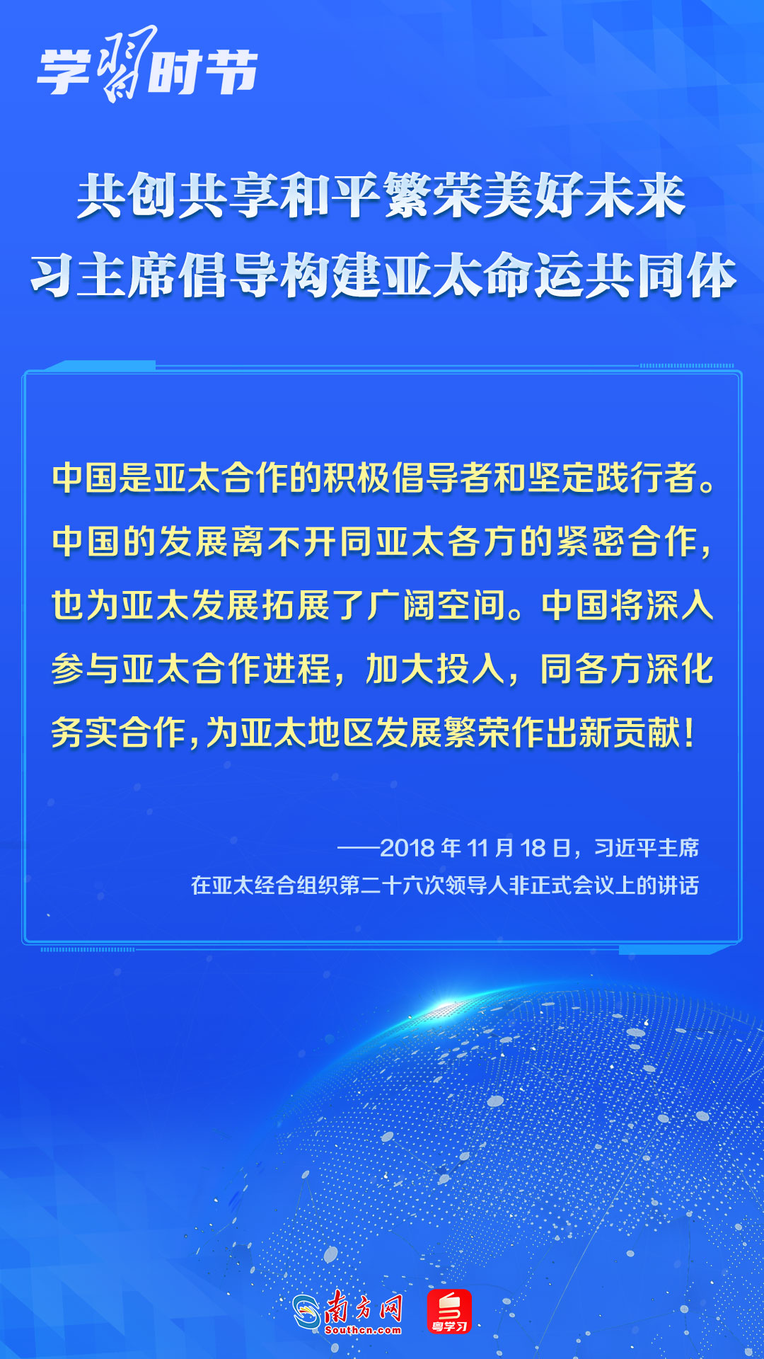 中國一直是APEC的積極參與者、貢獻者,為推動建設亞太大家庭發(fā)揮了重要作用。習近平主席多次出席APEC會議,以中國主張促進亞太合作,以中國貢獻推動亞太發(fā)展,以中國智慧凝聚亞太共識,多次闡述構建開放包容、創(chuàng)新增長、互聯(lián)互通、合作共贏的亞太命運共同體的理念主張和重大意義,讓我們一同學習。