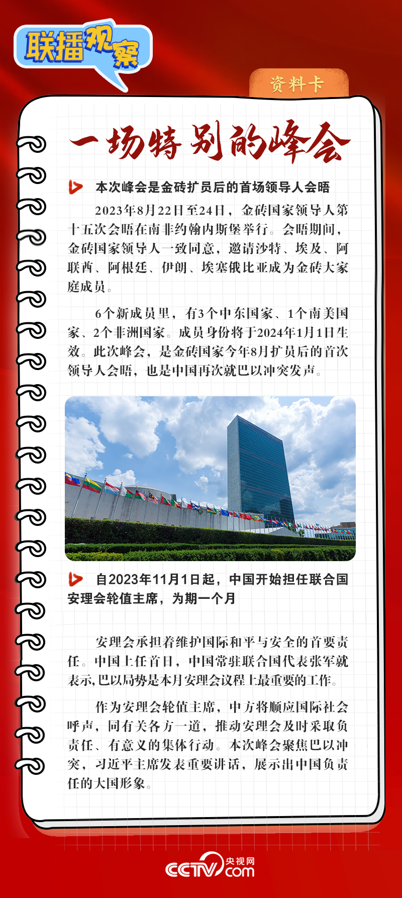 聯(lián)播+11月21日晚,習近平主席在北京出席金磚國家領導人巴以問題特別視頻峰會。本次峰會是金磚擴員后的首場領導人會晤。