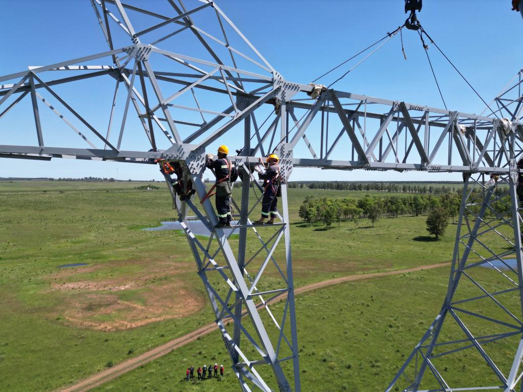 這是2023年11月15日拍攝的位于烏拉圭派桑杜省烏拉圭500千伏輸變電環(huán)網(wǎng)閉合項目施工現(xiàn)場。