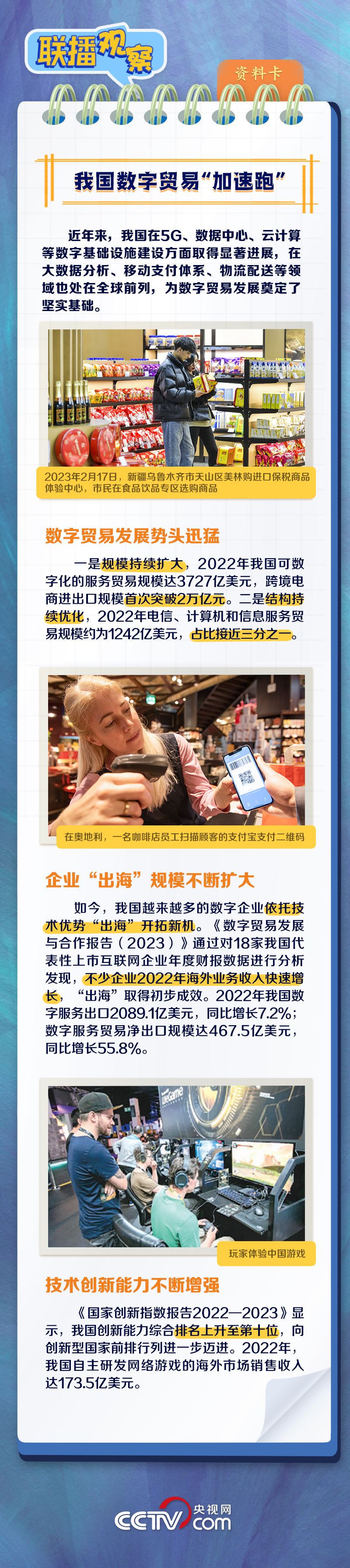 當(dāng)前,貨物貿(mào)易和服務(wù)貿(mào)易都呈現(xiàn)出不可逆的數(shù)字化轉(zhuǎn)型趨勢(shì)。什么是數(shù)字貿(mào)易?本屆數(shù)貿(mào)會(huì)有什么看點(diǎn)和亮點(diǎn)?我國(guó)數(shù)字貿(mào)易有何發(fā)展成果?央視網(wǎng)《聯(lián)播觀察》與您一同了解。