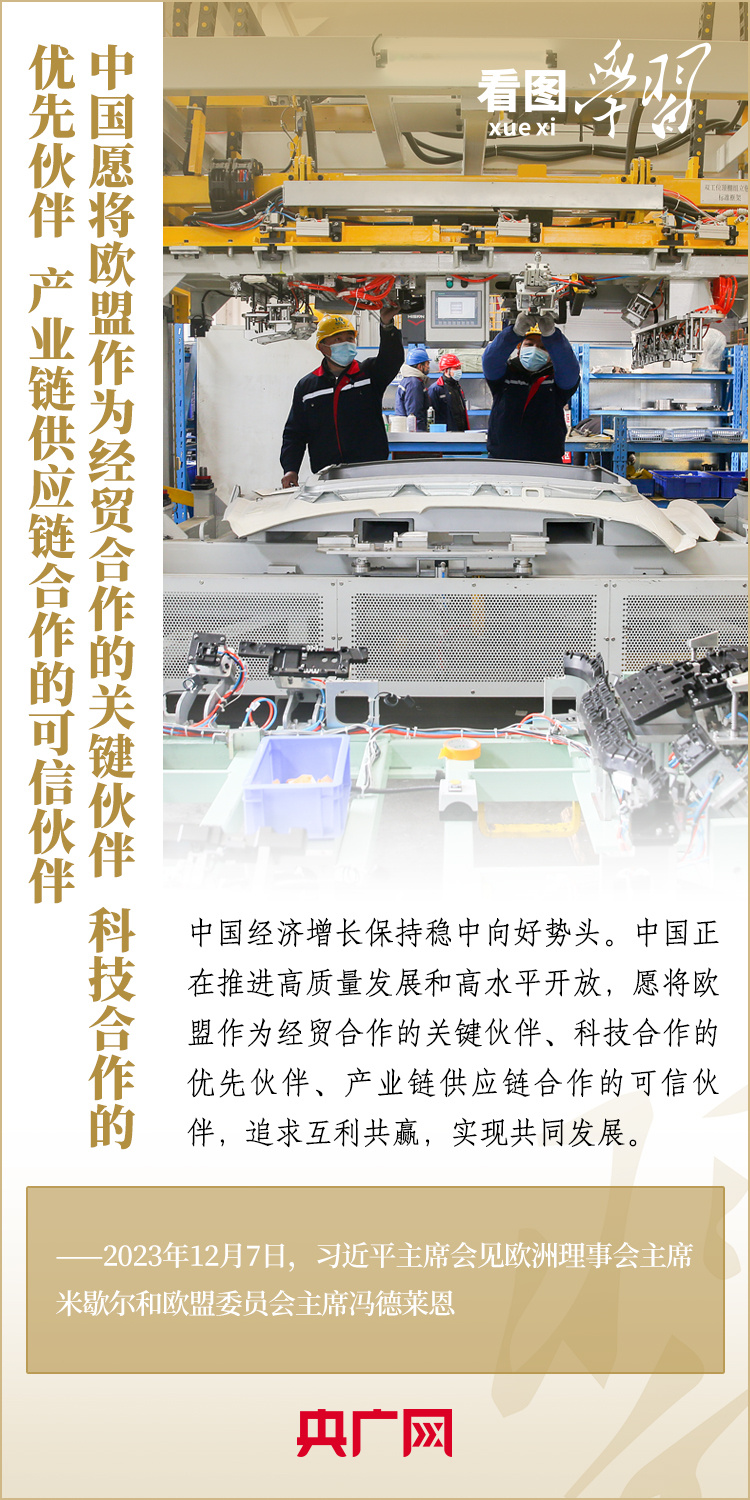 12月7日,國家主席習(xí)近平會見來華舉行第二十四次中國—歐盟領(lǐng)導(dǎo)人會晤的歐洲理事會主席米歇爾和歐盟委員會主席馮德萊恩,雙方就事關(guān)中歐關(guān)系的戰(zhàn)略性問題,以及中歐各領(lǐng)域?qū)υ捄献鳌㈦p方重點關(guān)切、全球治理、國際和地區(qū)熱點問題等深入坦誠交換看法,并就一系列問題達成重要共識。今年是中歐建立全面戰(zhàn)略伙伴關(guān)系20周年,習(xí)主席強調(diào),中歐關(guān)系具有戰(zhàn)略意義和世界影響,關(guān)乎世界和平、穩(wěn)定、繁榮。一起來學(xué)習(xí)!