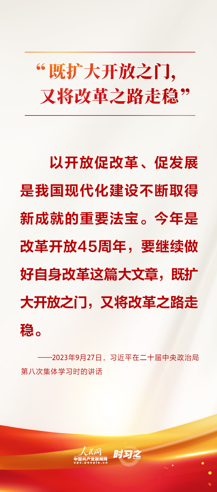 改革開放是堅持和發(fā)展中國特色社會主義的必由之路。今年是中國改革開放45周年,黨的十八大以來,習近平總書記多次在不同場合強調推進改革開放的重要性,用諸多形象生動的論述深刻闡明了改革開放的歷史定位和重大意義。