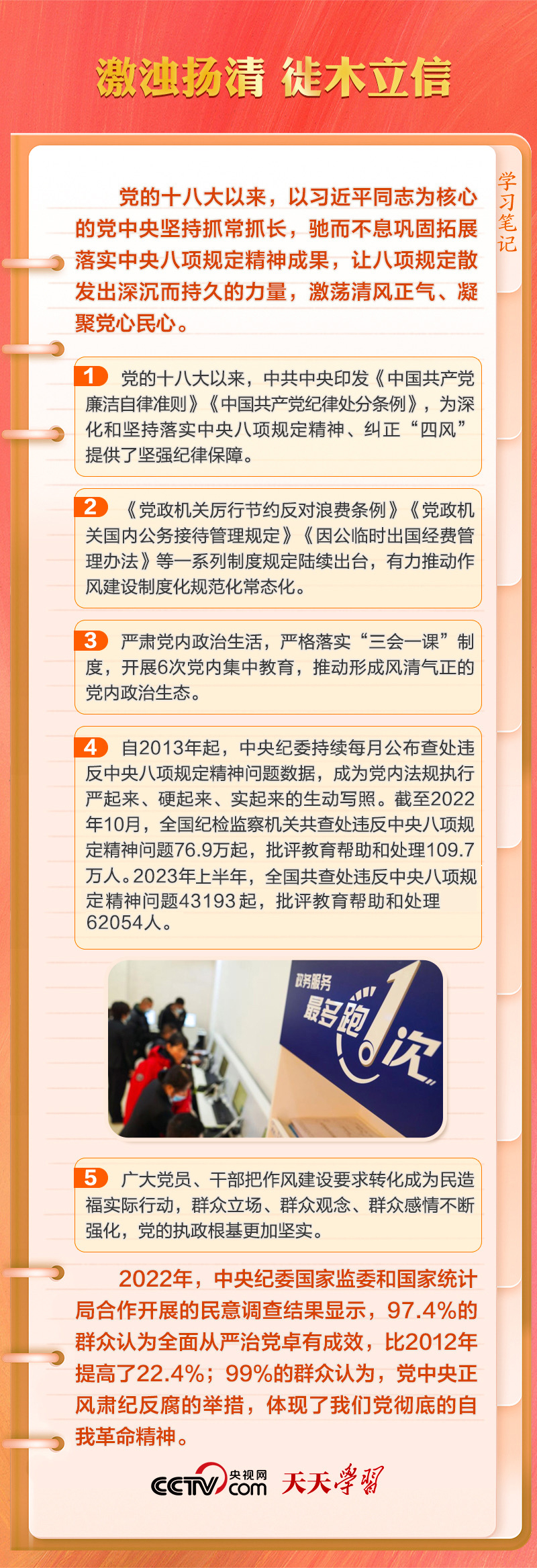 天天學習在二十屆中央紀委二次全會上,習近平總書記指出:“制定實施中央八項規(guī)定,是我們黨在新時代的徙木立信之舉,必須常抓不懈、久久為功,直至真正化風成俗,以優(yōu)良黨風引領社風民風?!?/span>