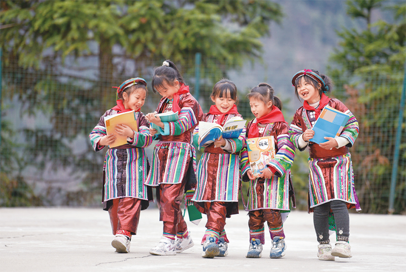 位于貴州省黔東南苗族侗族自治州從江縣大山深處的西山鎮(zhèn)中寨教學(xué)點(diǎn),是一所全校均為瑤族學(xué)生的“微小學(xué)”。近年來(lái),隨著教學(xué)條件逐漸改善,學(xué)校發(fā)生了翻天覆地的變化。圖為2023年2月16日,領(lǐng)到新書(shū)的瑤族學(xué)生在一起交流。 新華社記者 楊文斌/攝