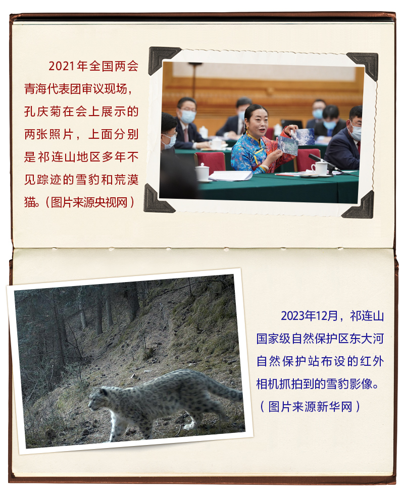 2021年3月7日,在全國兩會青海代表團審議現(xiàn)場,孔慶菊代表拿出的兩張“大萌貓”照片,吸引了習(xí)近平的目光。