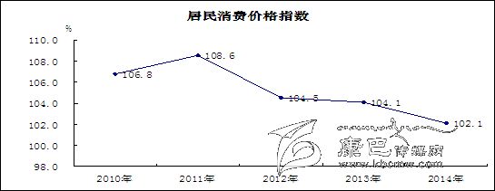 物價(jià)運(yùn)行基本穩(wěn)定,漲幅高于全國(guó)全省。2014年12月CPI同比上漲1.7%,全年消費(fèi)價(jià)格總水平比上年上漲2.1%,漲幅為7年來(lái)新低,比全國(guó)高0.1個(gè)百分點(diǎn)、比全省高0.5個(gè)百分點(diǎn)。