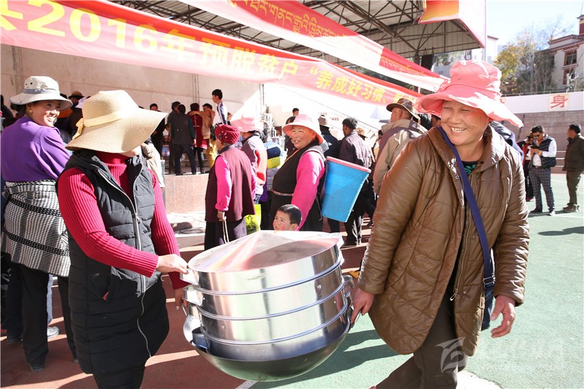 巴塘村民領(lǐng)取蒸籠。