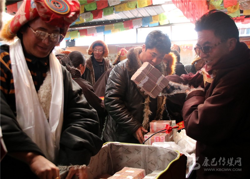 本網(wǎng)訊(刁海瀚 文/圖)日前,在海拔4500米的石渠縣色須鎮(zhèn)紅旗一村村民活動(dòng)中心院內(nèi),色須鎮(zhèn)達(dá)攏合作社將253萬(wàn)余元年底分紅分派給了263個(gè)牧民家庭,其中,建檔立卡貧困戶達(dá)70戶。