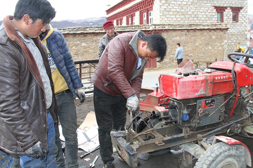 有的人家農機壞了,又不好拖運到壓瑪維修店里的,只要一個電話,壓瑪就自己開車到別人家里去修,不收出工費,只收維修費。這樣的事情十分常見。今年2月20日晚上,格西村阿昂家里的拖拉機壞了,第二天一早又要用,壓瑪師傅騎著摩托車趕了7公里夜路,修好后只收了120元零件費。阿昂說:“要是拖到縣城修,少了1000多元脫不了手,還不算吃住和耗費的時間?!?/span>